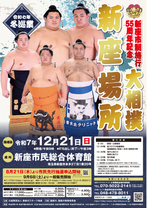 2025年12月21日(日)、新座市民総合体育館において、新座市制施行55周年を記念する「大相撲新座場所(冬巡業)」が開催されます。